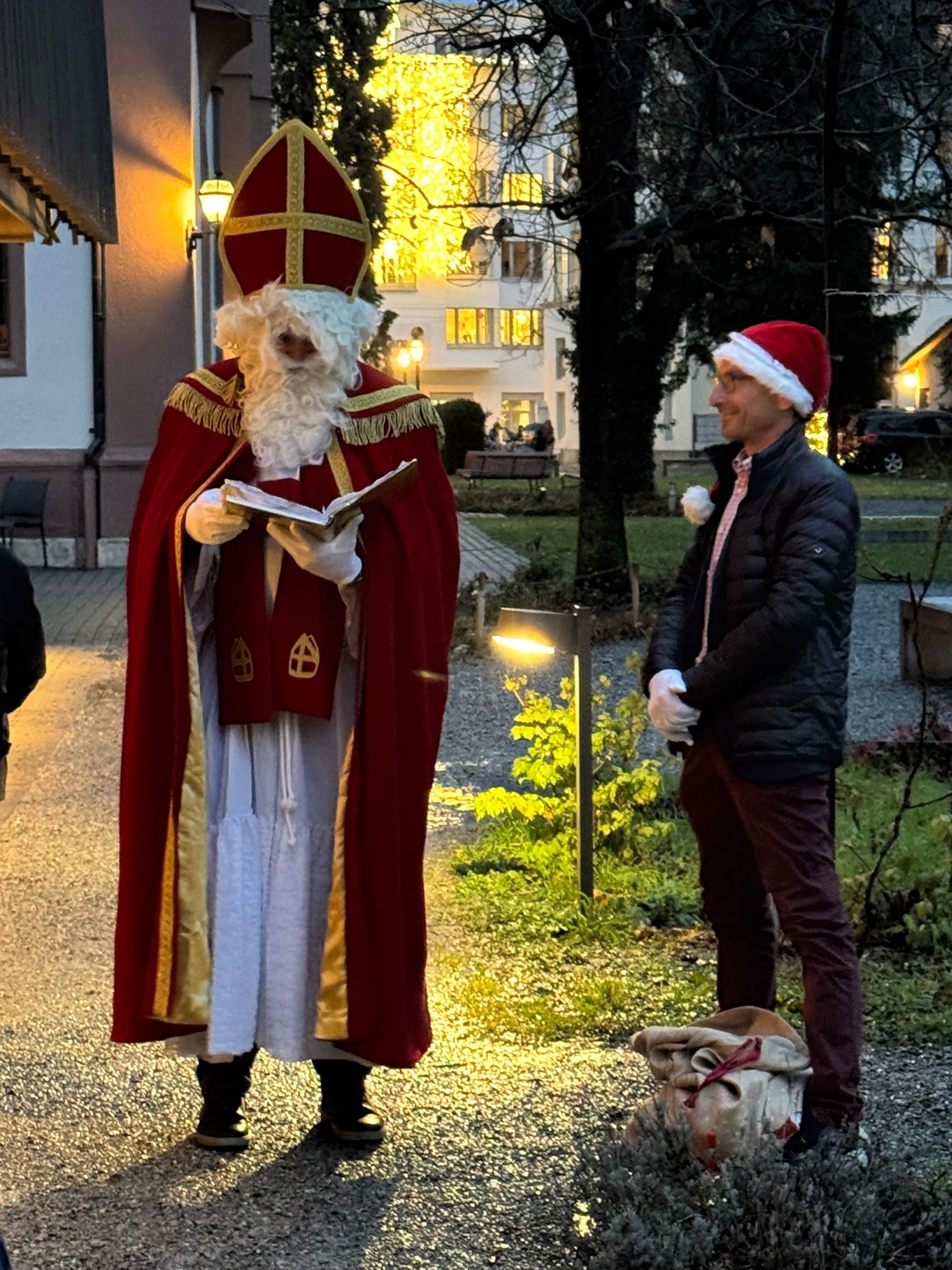 Der liebevoll geschmückte Saal und das stimmungsvolle Programm sorgten für eine festliche Atmosphäre. Ein besonderer Höhepunkt war die humorvolle und zugleich nachdenkliche Geschichte «Unruhe im Stall», eindrucksvoll vorgetragen von Ursula Meier. Ebenso begeisterte der Besuch eines grossen und sympathischen Samichlaus aus dem Schwarzwald, der mit süssen Geschenken viele Herzen erfreute, 🎅🎁. Die zahlreichen selbstgedichteten Verse gefielen ihm so sehr, dass er versprach, auch im nächsten Jahr wieder den Weg nach Basel zu finden.