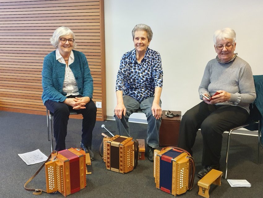 Elisabeth Schenk las die Weihnachtsgeschichte „D Dräiorgele Luisa“ von Alex KurzDie Fürobe-Musig Wisen spielte als letzten Block bekannte Weihnachtslieder wie „Leise rieselt der Schnee“, „Jingle Bells“ und zum Schluss sangen alle „Stille Nacht, heilige Nacht“ mit Begleitung der drei Schwyzerörgeli.